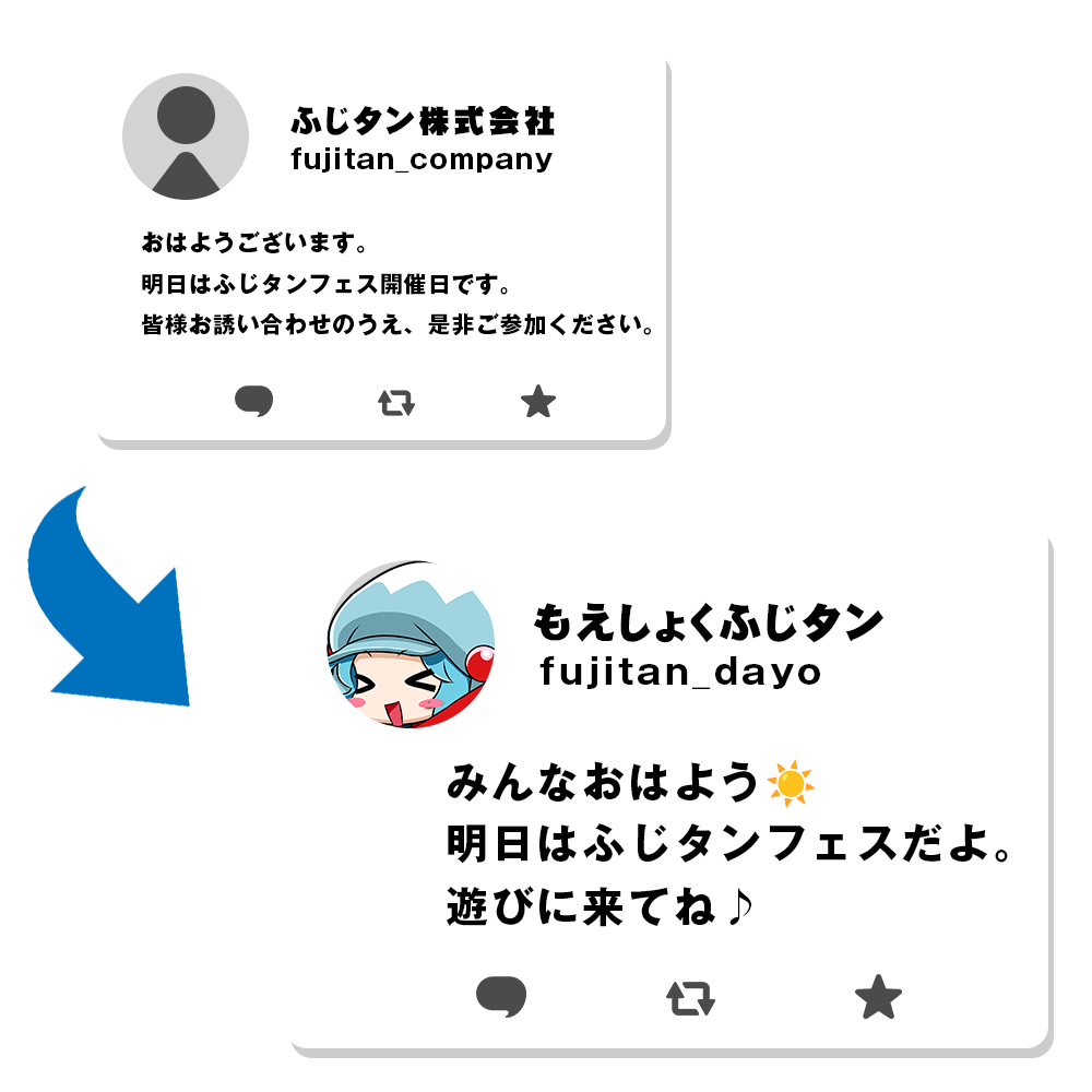 キャラクターの言葉なら楽しく、親しみやすい投稿に!