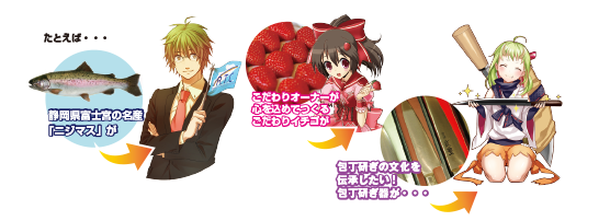 全国各地にある物産・名産・企業など、あらゆるものを「擬人化」※1という手法でキャラクター化することで注目度UPさせ全国、世界へアピールするプロジェクトです。